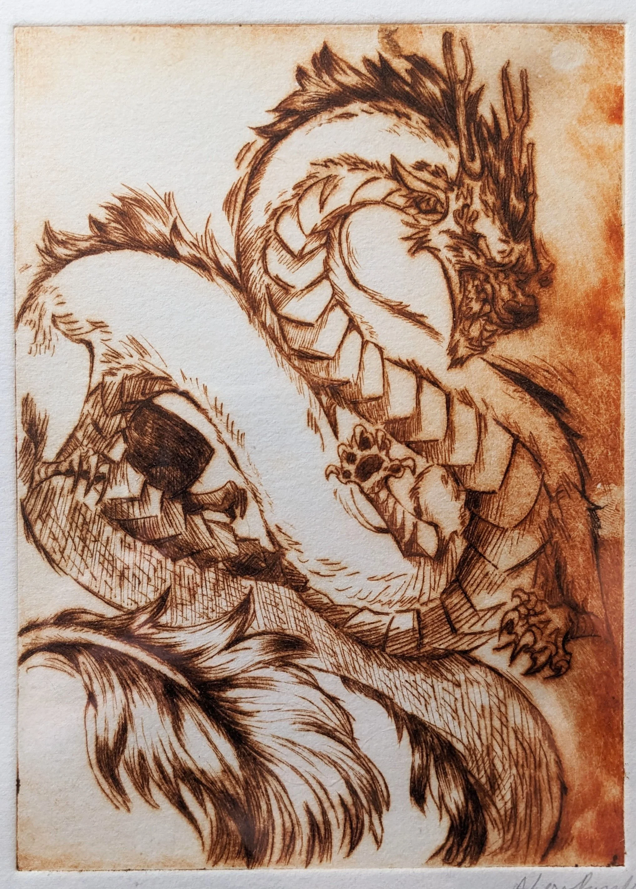The work I’ve been aspiring to make are the ones that tell stories, give information through a form. They exist in a state of guarding, of defending, transforming, of burning, of decay. Created mostly from cast forms, chains, in the form of pieces of armor or figurines; cuffs, gorgets, chunky rings and necklaces, cloaks, chain mail, and talisman. When I create a creature, they’re fanged and clawed. When I create armor they’re spiked and scaled.